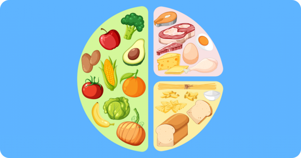 Данное правило заключается в том, что рацион питания должен на ½ состоять из овощей и фруктов, ¼ отводится на «полезные углеводы», как правило, гарниры, и еще ¼ — на белковые продукты (мясо, рыба).